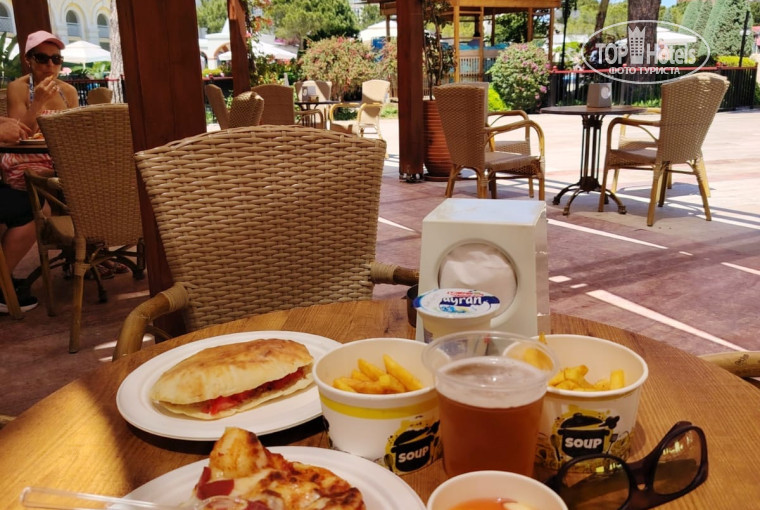Запечённая курица и мясо очень нежные и сочные. Говядина в основном в рагу и чаще всего суховатая. Рыба то очень вкусная, то сухая и с неприятным привкусом. Но в любом случае много всяких возможных вариантов можно придумать. Мы всегда находили что-то вкусное для себя и не могли при этом не объестся. Какие вкусные десерты в отеле! Обычно во многих отелях на вид пирожные, тортики отличаются, а по вкусу абсолютно одинаковы, в Кремлине у каждого десерта свой особенный вкус. Здесь я первый раз в Турции попробовала потрясающий тирамису, необычную пахлаву из слоев тонкого теста, переложенных мелким арахисом, пропитанных жидким молочным кремом и щедро засыпанных мелкой шоколадной крошкой. Боже, а какие вкусные традиционные турецкие закуски - из дробленого булгура, из нута, из густого йогурта с зеленью. Каждый раз, когда мы приходили в основной ресторан, обнаруживалось какое-то новое интересное блюдо. А из того, что представлено на шведском столе, можно было собирать каждый раз разное меню. В результате каждый прием пищи превращался в отдельное гастрономическое путешествие.