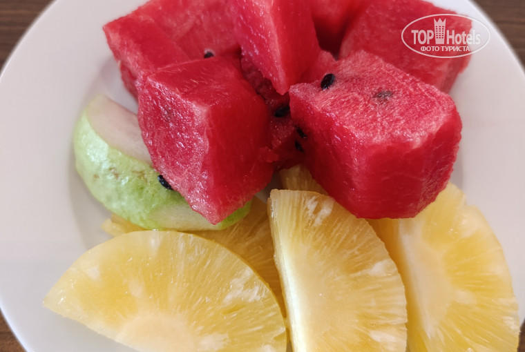 Проживали в отеле семьёй в составе - мама, папа, дочь 3 года. Начнем с хорошего: самый главный плюс отеля это его расположение - находится на 1-ой линии в центре Джомтьена, в пешой доступности есть два ночных рынка, в 100 метрах магазин 7-eleven, через дорогу пляж, куча массажных салонов, обменников и баров. Второй безусловный плюс отеля это его цена - отель бюджетный - мы взяли за 3600р./сутки с завтраками. Завтраки для такого бюджета вполне приличные - хороший выбор блюд и даже иногда было разнообразие - сосиски, курица, рыба, омлеты, супы, выбор фруктов.