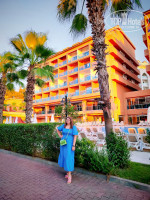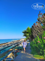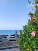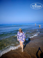 ПЛЯЖ: пешком минут 10-12, на транспорте быстрее, но он ходит редко и набивается под завязку, чаще ходили пешком, так как всего одна маршрутка на весь огромный отель... Сам пляж достаточно чистый, лежаков хватало, но близко находится волейбольная площадка, часто прилетало по голове... На пляже есть холодильники с водой, кофе, чай и юпи... Если подняться в бар, то и еда есть, и другие напитки. До туалета на пляже надо идти наверх, не удобно. Переодевалки сломанные, дверь на уровне моего пупка, лучше там не переодеваться. Море замечательное, плиты есть, точнее камни, но не везде, есть проходы песочные. Красивые цветочные кусты на втором ярусе по дороге к пляжу.