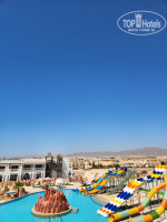 На территории есть 2 бассейна ( не подогреваемых), немного водных горок, но работают по часам, есть лежаки у бассеинов, но их мало, много зонтиков сломано, где-то их вообще нет.