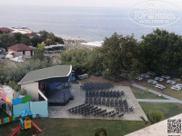 Пляж — галька, не всем может быть комфортно, но если привыкнуть или взять специальную обувь — вполне нормально. Минус в том, что береговая линия довольно узкая, и в часы пик лежаков может не хватать.