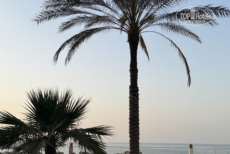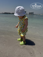 Море теплое, песочек белый , встречаются и на пляже и в море острые камешки и ракушки. С лежаками проблем нет их много. С полотенцами проблем нет, пришел в бассейн карточку дал полотенце взял, уходишь сдал. На море так же. Полотенца чистые. Не рваные.