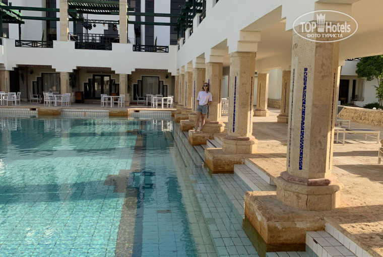 Шведский стол в ресторане La Veranda, официанты стараются, но тарелок, чашек, столовых приборов не хватает. В ресторане 2 зала, в одном все готовое, без очередей и толкотни, выбор блюд ограничен, но всегда есть что вкусненько покушать. Во втором зале вечный движ и очереди, особенно за кофе утром и за мясом вечером. Курица, рыба, говядина - каждый день. Фруктов целая гора, дыни, яблоки, персики, виноград, местные фрукты. Арбузы за 10 дней были один раз- очень странно нам показалось, может не сезон в апреле.