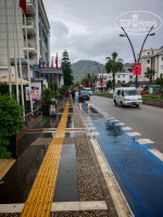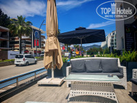 Своего пляжа у отеля нет, о чем мы знали заранее. Выходишь пешком за 5 мин на набережную и выбираешь на свой вкус пляж, берёшь в кафе 2 напитка и получаешь 2 лежанка и зонтик на весь день.