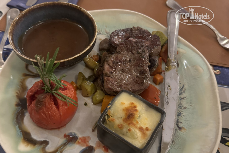 Обязательно вернемся сюда 🌟интересная подача блюд . Красивая территория . Всегда есть свободные лежаки у моря и бассейна . 🏝️🏝️🏝️безопасно для детей . Чистая и ухоженная территория