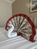 Отдыхали,в этом отели с 27 апреля по 7 мая, с супругом и с сыном 17 лет, в разных номерах. Отель расчитан 16+. Нам достался 1 корпус.На ресепшен отлично понимают русскую речь, как в принципе и во всем отели. Отличный качественный отель. Территория очень зеленая и красивая. Всё в цветах и пальмах, есть где погулять, все ухоженное. Вечером ходили гулять в старый город, он практически в 500 м от отеля, там можно купить любые сувениры.