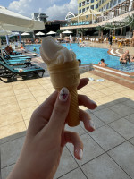 Постоянно можно было пользоваться услугами баров (в лобби, рядом с бассейном, на пляже). Алкоголь у них их же производства, как я поняла. Т.к. отель входит в Kirbiyik Holding , который производит алкоголь. В этих же барах можно было выпить айран, соки, взять себе воду (в маленьких пластиковых полубутылочках) или попросить сварить вам кофе.