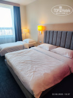 Номер комфортабельный, чистый, отличная кровать, ванная комната,холодильник,все понравилось, нет никаких нареканий.