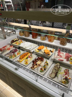- Обед: супы двух видов, макароны в трёх видах с разными соусами, овощи на гриле (перец, кабачок, цветная капуста, брокколи, морковь), жареное филе куриное и филе пангасиуса в панировке, картофель фри, рис вареный, картофель, три вида пиццы, блюда из мяса, свежие фрукты, свежие овощи, выпечка, сладости, хлеб, салаты. Есть диетический стол (вареные овощи, мясо, гарнир).