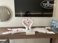 Номер семейный, с большой двуспальной кроватью и двумя односпальными (см фото). В шкафу халаты, тапочки, бесплатный сейф (в сейфе предусмотрена зарядка для гаджетов). По ТВ можно посмотреть русские каналы. Имеется чайник, кружки, стаканы, чай/кофе/сахар. Бутилированная вода регулярно пополнялась (3 бутылки). В ванной комнате регулярно пополнялись принадлежности для душа (шампунь, бальзам, гель для душа, шапочка), полотенца менялись по мере загрязнения. Уборка была ежедневно, за оставленные 5$ несколько дней накручивались лебеди из полотенец.