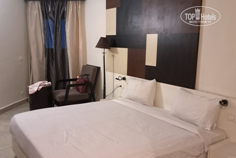 НОМЕР. Номер старый, мебель покоцана (для меня это не имеет значения). Расположен далекова-то от ресепшен, за день 10000-15000 шагов вам обеспечены (+лестницы), но меня это все устраивало. Очень хороший матрас (новый), для меня это очень важно. Балкон отсутствует, оооочень маленькое окно, которое закрывается на крючок. Вода в душе прохладная, меня устраивает, с детьми - будет проблема. Телевизор работал (2 российских канала), холодильник работал (но слабо), сейф работал. Кондиционер... В первый вечер 3часа ждала пульт от кондиционера (по другому его не включить, не выключить). Ожидание сопровождалось походами на ресепшен (15 минут мадам, все будет и т.д.). Из 10 дней пребывания, 7 дней, каждый вечер ремонтировали кондиционер, он переставал охлаждать. Даже, когда он отремонтирован, температуру устанавливала на минимум, холодно не было. Кондиционер работает очень громко. Переселить не просила, т.к. в номере не так сильно слышна анимация и меня никто не кусал!!! Ершика в туалете нет.