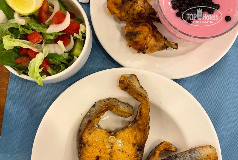 Обеды однообразные, скудноватые немного, часто на обед подавали рыбу(просто ее не едим, поэтому такое впечатление), но всегда можно было из какого-то блюда доставь куриную ножку или кусочек курицы.