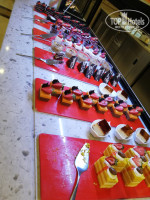 Еда. Ресторан наполовину пуст. Еды много на любой вкус. Завтрак - оладьи, яичница, мясо, сыры, колбаса, фруктов много, зелень, гарниры разные (рис, картофель, макароны, запечёные овощи). Две кофемашины (кофе, эспрессо, капучино, какао). Четыре заварных чайника (ароматный, горячий). Обед - супы, мясных блюд очень много, курица. Соленья, оливки. Много зелени. Пирожных три витрины. Ужин - как в обед плюс жареное на огне мясо, рыба. Сладости. Давали арбуз, дыню, клубнику, мед на сотах. Мороженое 6 видов в стаканчике или в вафельном рожке. Официанты шустро бегают и убирают посуду. Приносят алкоголь или пиво (можно и самому сходить на стойку). В лобби-баре с 11 часов мороженое, коктейли. Бар рядом с танцполом предлагает пиво, воду, легкий перекус или даже горячие блюда. 2 бассейна, один с горками.