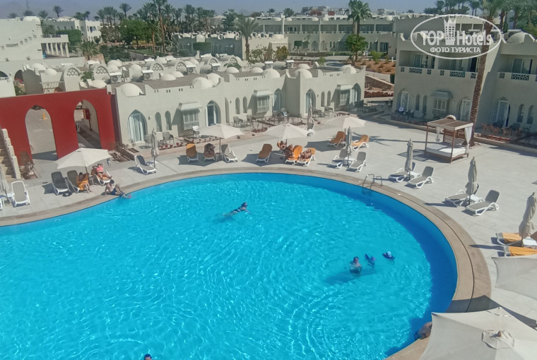 Отдыхали семьями с друзьями. Искали отель с рифом, песчаным входом и аквапарком, с хорошим питанием, современными номерами за приемлемую цену. В принципе это и получили. Жили в номерах Делюкс вид на сад, все новое, соседей не слышно. Русский канал только тнт. Питание не такое разнообразное как в Турции, не хватало арбуза в обед, сначала была гуава, потом пропала, на королевские креветки попали один раз. Хорошо, что вечером можно сходить не только в основной ресторан, но и в итальянский рядом с рецепшн, там поспокойнее. Персонал старается, быстро все убирают, чтобы носили напитки, надо стимулировать чаевыми, после них официант как за родными бегает)) Самым слабым местом оказался пляж, не хватает зонтиков и шезлонги очень плотно, в середине орет музыка, в туалетах были очереди и мне даже стучали в кабинку. Это конечно связанно с переполненностью отеля в майские праздники. Риф не впечатлил, он кочками, надо плыть, лучше ласты. Детям для первого раза хватило, кораллы, рыбок увидели. Понтон да качает, но нам не критично было. Аквапарк нормальный, можно прокатиться. Мы еще были в аквапарке напротив в Альбатросе, брали с питанием взрослый 40 долларов, детский 20, мороженое нон стоп, понравилось с манго, много горок, территория двух отелей большая, есть детская анимация. Еще хотелось бы отметить территорию отеля, очень зеленая, садоаник постоянно ухаживают. Отель старый, нуден ремонт , в лобби, в туалетах и на пляже тоже. Отель достойный, если для вас не принципиален хороший подводный мир.
