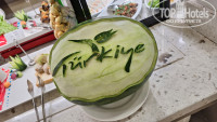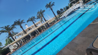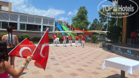 Долго описывать не буду,заострю главные моменты. Приехали рано в 5 утра,мальчики на рессепшене одели браслеты ,сказали немножко погулять,часиков до 10. Типа будет пересменка и вас сразу заселят. Подключили интернет. Диванчиков полежать с дороги куча,ложись и отдыхай,бар у бассейна работает круглосуточно,пей- не хочу. Сходили посмотрели на море,оно тут,конечно,шикарное. Невозможно не влюбиться. В 7 позавтракали,и в 11 нас заселили. Номер небольшой,постель чистая,тараканов не видела,номерной фонд уставший очень( кстати диванчики в холле тоже требуют химчистки). Бар пополнен,но на двоих,полотенца тоже на двоих. Хотя мы были втроем.Мыльно- рыльных практически нет,лучше брать с собой. Дозаторы в душе и мыло пустые,просила 2 дня на рессепшене пополнить,в итоге ничего не пополнилось. Потом встретила уборщицу и тыкнула ей,что пустые дозаторы. Тогда налили жидкости. Убирались каждый день и бар пополняли.В номере есть дверь в соседний номер. Непонятно зачем сделали,слышимость там хорошая.Есть сейф бесплатный. Питание и обслуживающий персонал очень хорошие. Специалисты по работе с гостями всегда с улыбками,подойдут,спросят,помогут. Анимация мне не понравилась. Соседний отель отличался очень. Там аниматоры прыгали и скакали все утро на пляже,здесь же как- то скромно .Никаких пенных вечеринок небыло. Были развлекательные мероприятия приезжие по вечерам. СПА отвратительное. Неприятный осадок оставил работник- мужчина,типа если не хотите,то давайте,отсюда,до свидания. Это огромный минус отелю. Сама территория отеля чистенькая,небольшая. Мне не хватило ярких красок,цветов на территории. Территория абсолютно простая,обычная. Есть несколько водных горок. Еда в этом отеле на каждом углу,и на пляже,и у бассейна. Кофетерий работает до ночи,что тоже отлично.Нам не хватило теплой воды в душе на пляже и на территории отеля. Так как май,прохладно,после моря хочется сполоснуться,но вода очень холодная.Пляж очень близко. Идти 2- 3 минуты. Чистенький. Лежаки ребята драят постоянно,все везде убираеся вовремя. На пляже тоже есть фрукты,картошка,пиццы и разные напитки. Рядом с отелем есть бары- караоке,ночная веселая жизнь.Вообщем,хороший приятный отель. Был бы подешевле,возможно еще бы приехали. Друзьям могу смело советовать!