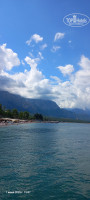 Ему присвоен Голубой флаг ЕС.Он,действительно чистый,с мелкой галькой,деревянными настилами для удобства.Поделен на две территории для курящих-правая сторона,для тех,кто не курит-левая.По обеим сторонам есть трап для спуска к воде.Галька,хоть и мелкая,но спускаться без аквашузов неприятно,а с трапом-проще. Есть пирс с шезлонгами и зонтиками,НО))платно)) Вода в море кристально-чистая,вид с пляжа на горы-ВЕЛИКОЛЕПЕН!!!