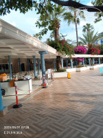 На пляже можно перекусить: картофель фри 🍟 , котлеты , помидоры , огурцы , можно взять лепёшки , печет женщина прямо при вас, выпить айран . Там же на пляже есть пиво, вино, соки, кола, пепси, чай, кофе.Если кто-то говорит , что здесь есть нечего- не знаю, что же тогда они дома едят!!! В среду приезжает рынок, можно купить клубнику, черешню, дыню и т.д по хорошей цене . Лучше покупать на лиры. Обменник недалеко- от отеля направо, через дорогу и немного прямо пройти. Курс был 2.33
