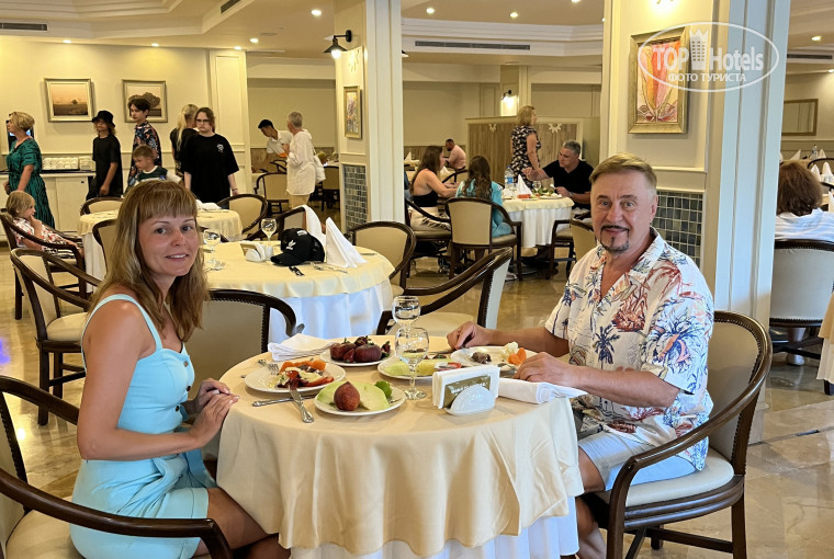 Питание до 1 июня было шикарным. Была и говядина, и утятина, стейки из красной рыбы, сибас, дорада, морепродукты. Много фруктов. Вкусное мороженое как в упаковках, так и шариками на раздаче. Овощи и сладости в огромном разноообразии. Алкоголь импортный есть, но выбор невелик. В отеле Starlight, инфраструктурой которого тоже можно пользоваться, выбор больше (в главном корпусе). С началом июня говядина и утятина пропали, кормили в основном курицей, индейкой. Но рыба была по прежнему в достатке, на ужин часто давали говяжий язык. Готовят очень вкусно. Отдельное спасибо повару, который готовит борщ на обед. Обязательно попробуйте. Лепешки гезлеме не понравились вообще. Айран тоже странно выдают. Только на баре и наливают из бутылки , а не в индивидуальных упаковках, к которым мы привыкли. Голодными мы никогда не были, готовят очень вкусно.