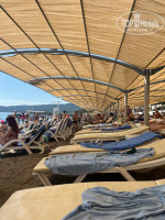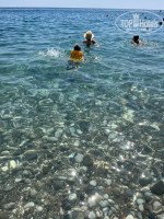 Пляж широкий, многие отмечают, что шезлонги стоят близко друг к другу, это действительно так, в то же время много свободных лежаков. Мы приходили на пляж к 9-00 и всегда без проблем находили свободные места. Отдельно отмечу навесы от солнца вдоль всей зоны шезлонгов, всегда можно спрятаться от палящего солнца, гораздо удобнее,чем искать тень под пляжными зонтиками, которые во многих отелях. Рекомендую купить аквашузы для удобного входа в море, т.к на входе галька,местами крупная. Температура моря была в районе 22 градусов, водичка бодрящая, в первые дни супруга с сыном не купались, потом привыкли.