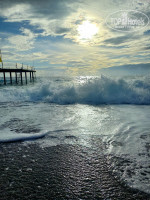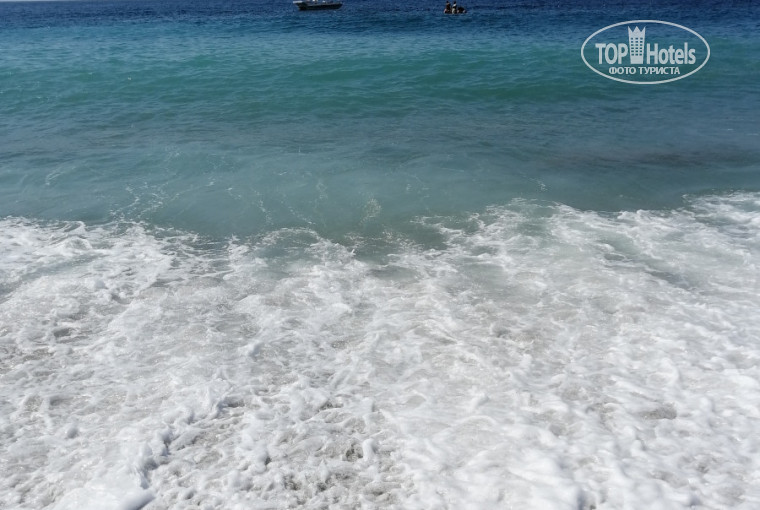 В отеле большой аквапарк, горок достаточно. До пляжа ходят каждый час автобусы, битком никогда не ездили, места всем хватало. Пляж с мелкой галькой, вода чистая, в воде были плиты, но их видно, так что не поранишься.