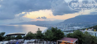 У отеля наверное уникальное расположение, он находится на вершине горы, возвышающейся над побережьем. Если прилетать в Газипашу, то отель видно с самолета при снижении перед посадкой. С этим связан конечно один из минусов отеля, что до пляжа надо добираться на лифте. Зато 3/4 номеров имеют вид на море. У части номеров при этом море занимает всю панораму.