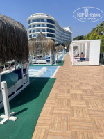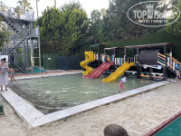 - вся территория в бассейнах плюс две горки маленькая с песком вокруг для детей и средняя;