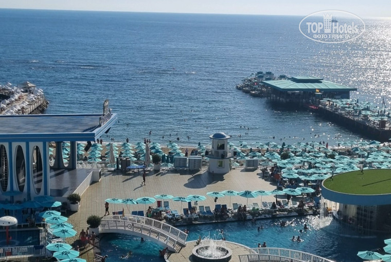 В 2023г-минус на пляже-присутствие посторонних жителей курорта.Пляжная линия совсем небольшая и когда приходят местные с детьми отдыхать,раскладывают на берегу поляну и день отдыхают,мягко говоря напрягает.Финалочкой было увидеть,местного жителя с огромными собаками,которых он привел купаться🙄а далее извините,и следы жизнедеятельности собак,малыш на берегу сидел и нюхал это безобразие.Возмущению,не было предела.Это был шок!мы конечно же ,обратились к администрации отеля,но нам ответили «Море одно»,а за шезлонги вы заплатили.Отходы собак-убрали.И это нас огорчило конкретно.
