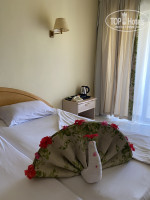 Снова вернулись в этот замечательный отель 😍Отдыхали в самом начале июня😎 В отеле были около 15:00. Засели сразу же, в тихий, хороший и чистый номер на втором этаже! Большое спасибо менеджеру отеля, все наши пожелания были учтены!👍🏻 Отель сильно преобразился по сравнению с прошлым годом. Лежаки у бассейна новые, уличная мебель и в ресторане тоже новая. Персонал добрый и отзывчивый. Еда как всегда очень вкусная. Рыба, курица, индейка и говядина каждый день. В отеле есть аниматоры, очень хорошие и веселые!🫶🏻 В номерах каждый день убираются, номера старые, но и цена соответствующая! В номере мы только ночевали:) Интернет только на ресепшене, но я отлично отдохнула от социальных сетей.