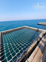 Отличный удобный пирс. Все дни были волны, купались и прыгали с пирса. Очень понравилось. С берега ни разу не заходили в море. Вход песок с камушками и от волн вода у берега кажется мутной. Отличный бар на пирсе, очень вкусное мороженое.
