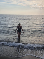 Хороший, большой. Вход в море пологий, мелкая галька. Босиком вполне комфортно. Обновили лежаки. Минус, что стоят вплотную друг к другу и отдыхающие пробираются сквозь маленькие расстояния, периодически задевая других. Столиков и горшков для мусора маловато. Но, работник пляжа хорошо следит за чистотой, постоянно убирает. Отдыхающие занимают лежаки с 6 утра. Но даже при этом всегда можно найти свободные. Море прекрасное в Кемере. На наши дни было около 23-24С, вполне тёплое, чистое. Первые три дня небыло погоды, пасмурно, дождь, а потом резко жарко. Успели и накупаться и загореть.