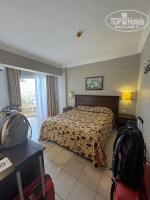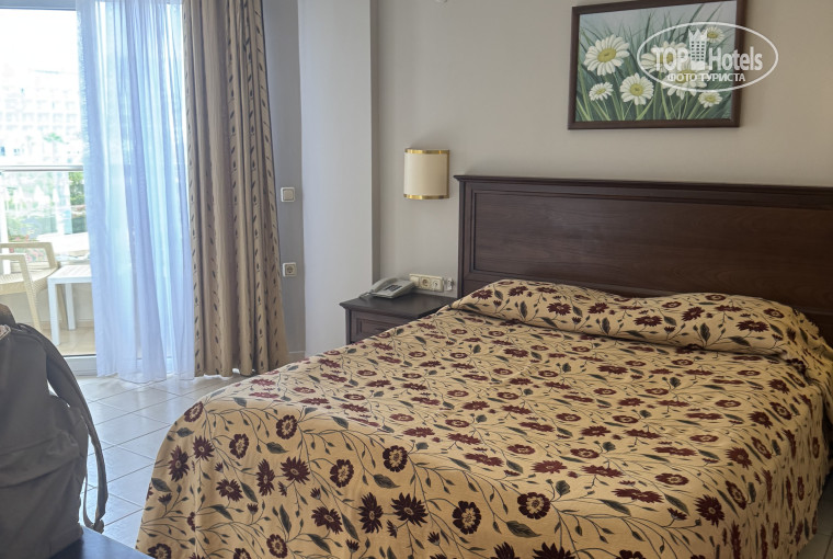 Изначально нам достался номер 157. Номер стандартный, из минусов могу отметить что кондиционер направлен прямо на кровать и спать не комфортно. На следующий день мы обратились на ресепшен с просьбой поменять номер, нам не отказали в просьбе. Сначала предложили номер на мансардном (5) этаже, там потрясающий вид на море, но из-за скошенного потолка кондиционер установлен в 1.5 метрах от пола и дует прямо на кровать. Также нам предложили номер 155, на втором (1) этаже, на нем мы и остановились.
