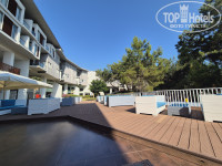 Построен в 2008 году, был первым гольф отелем в Турции, явно что-то премиум премиум тогда был - архитектура и масштаб корпусов видимо были без лимита по стоимости. Окна везде, бетон, пандусы переходы, лифты везде. Отель явно вмещает сильно больше гостей - сейчас несколько угловых ресторанов просто не используются. Есть лёгкая усталость там и тут, но через 30минут этого не замечаешь - всё что нужно, всё работает и нормально выглядит. Растянытуе корпуса, никаких окон-в-окна, из большиства корпусов вид на море, не наморе только у тех кто на первом этаже или перед ёлкой у центрального бара. Осень, Зима, Весна - работает как гольф-отель, поэтому все части отеля в рабочем состоянии. Но, важно, пройти отел по диагонали от голф-клуба до дальнего тениссного корта - всего 15 минут в нормальном темпе, а основное перемещение всё-таки в 2 раза меньше времени занимает, не пугайтесь.