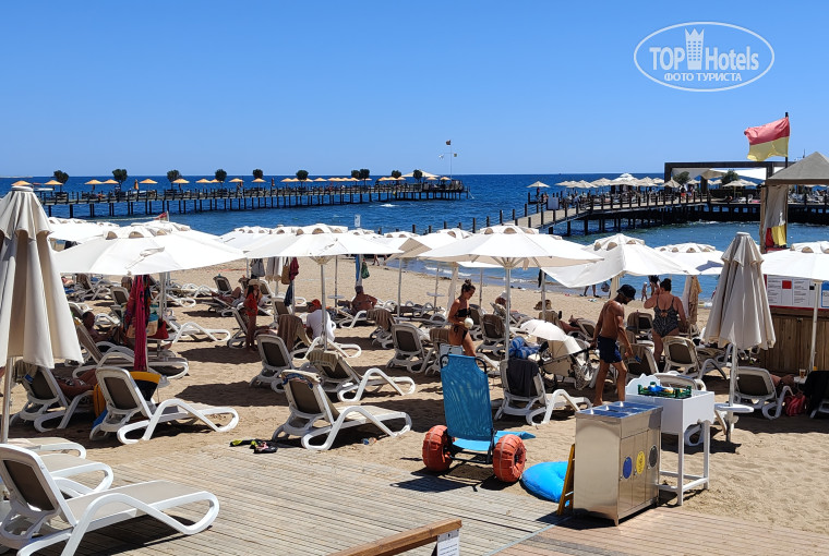 Были в отеле в конце июня, погода была супер. Заезд наверное на 5 (русскоязычная девушка на ресепшене, имя точно не помню-Долола), отдельное спасибо. Номер вполне хороший. Скажем так, понравился. Еда-наверное , понравилось. Пляж-приходилось вставать по раньше, чтобы занять место на пирсе, т.к. после девяти , там всё занято.На пляже лежаки свободные, до 10 можно ещё найти, естественно не первые ряды. Алкашка стандартная. В целом, всё понравилось. Отель оставил хорошее впечатление, вернулся второй раз, наверное да, если цена будет адекватная. А так, отдохнули хорошо. Негатива не было. Хороший отель. Да, до пляжа минут пять пешком, но поверьте, это лучше, чем ждать шатл.Вообщем, понравилось. Спасибо отелю за хороший отдых. Единственное, что не очень-для немцев (и других иноземцев) более больше симпатии. Происходило это во всем, от обслуживания в ресторане, до обращения на ресепшене и отношения барменов( хотя возможно кто то скажет, что это не так, но , это я так увидел). Мы особо не заостряли на этом внимание, но это было очевидно. В ресторане они к ним первым подойдут(как и в баре). Да и в целом, любые вопросы для , скажем так немцев, решали быстро.Но всё же, это не особо бросалось в глаза, поэтому отдохнули хорошо. Персоналу и всему отелю спасибо.