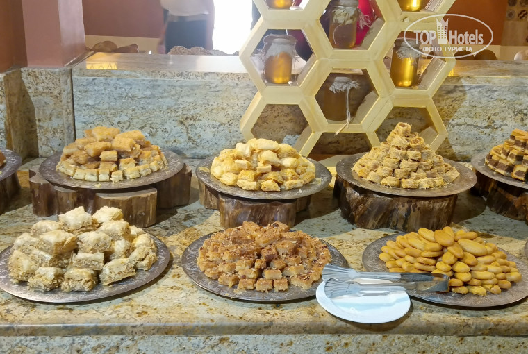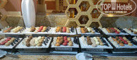 Еда очень вкусная и выбор огромный! Очередей за едой там никогда нет! Некоторые блюда меняются каждый день, дают кальмаров, крабов, креветок, мидии, роллы, разная рыба. Из мяса: кура, ягненок (просто таял во рту), говядина, индейка. Овощи, фрукты – стандартные. Мороженое на обед и ужин в неограниченном количестве, кстати очень вкусное. Также очень вкусные десерты и наисвежайшая выпечка. Браво поварам!!!