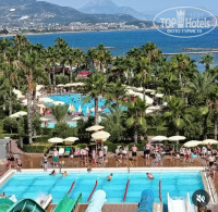 Всем добрый день! Начну по порядку. Летели из Внуково Турецкими авиалиниями, все вовремя, прилетели даже на 30 минут раньше, мне понравились эти авиалинии во всем, умнички! Принимающая сторона тоже все хорошо. Вот дорога до отеля была длинной...Примерно 3 часа, пока многих развезли по отелям. Но тут заранее знали, что путь не близкий, поэтому терпимо. Тут либо выбирать изначально другую локацию, ближе к аэропорту, либо заказывать индивидуальный трансфер. На ресепшн была очередь, приезжающих много, хотя это не прям разгар сезона. В основном европейцы. Когда очередь до нас дошла, нам сказали, что все номера стандарт заняты и предложили заселиться в номер стандарт-инвалид (не знаю, что это у них означает) на нулевом этаже, а завтра переселят в освободившиеся номера, либо платите 100 долларов и заселят в двухкомнатный номер. После недолгих препираний с моей стороны (здесь сказалась усталость после дороги и я конечно повредничала), я согласилась на доплату и заселение в двухкомнатный номер, чтобы уже никуда не переселяться, ну не хочется тратить драгоценные дни отдыха на переселение, и так день приезда и отъезда пропадают. Пришли в номер и.... Номер на втором этаже с выходом на крышу пристройки, то есть запросто по крыше можно зайти в номер)))). Мало того, после того как все помылись, увидели огромную лужу воды, щель в душевой кабине внизу при стыковке с полом и вся вода бежала наружу... Вообщем пришлось опять идти на ресепшн. Блин, ну ведь заплатила вам 100 баксов, но поселите то в конце концов нормально, но нет же. Оказалось, что это тоже последний номер((((, хотя народ заезжал и заезжал. Ну нафига продаете туры в отель, если нет свободных номеров. Вообщем, плюнула, обещали отремонтировать душ, чтобы не текла вода и мы пошли все спать уставшие))), переселяться уже не собиралась, лишь бы не протекала душевая. На следующий день на встрече с гидом Сабиром, я просто ему рассказала что так и так, он тут подошел на ресепшн, поругался с ними на своем языке, они тут же отреагировали. Заехали мы все-таки с третьей попытки в новый номер с видом на море! Но осадок остался конечно, К европейцам подход другой в этом отеле, это даже невооруженным глазом видно. Сами европейцы ведут себя абсолютно нормально по отношению к русским. Ну а дальше, море, солнце и наслаждение отдыхом! В остальном для нас все было отлично! Кому важен нормальный заход в море, идите на самый крайний пляж слева, за горками, там хороший песчаный вход, лежаки, навесы, бар, мороженое бесплатное (с 12 до 16) эскимо. В отеле в баре у бассейна с 14 до 16 другое мороженое, что-то типа фруктового льда, детям оно почему-то больше нравилось). Еда на каждом шагу, голодными не останетесь. Но рыбу как по мне не умеют готовить, постоянно горчила, хотя ее было очень много, но после 2-3 попыток ее поесть, больше не брали. Мясо есть всякое, мы не привередливы в еде, горы еды не набирали, наученные). Несмотря на обилие еды, поправились не сильно, потому что постоянно курсировали бассейн-море-горки и так по кругу))) Отлежаться на шезлонге не получалось. Про анимацию ничего сказать не могу, мы на нее как-тот не ходим). За территорией (это небольшой минус) погулять негде. Ходили до Мигроса и обратно. Мне отдых понравился, как вариант, если будет тур по такой же невысокой цене, то приедем снова, хотя я сторонник новых локаций. Так что, езжайте, не пожале