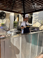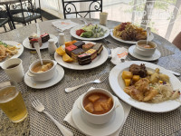 Хороший кофе в кофе машинах, отличная выпечка и круассаны по утрам, прекрасный выбор тортиков и пирожных. Блинчики, вафли, омлеты. Подают отличную тушенную говядину, много крем-супов, хлебов. Есть гриль - люля, рыба, курица. Но гриль слабый, пересушивают.