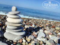 Пляж большой, толп народа нет. На пляже галька. Я раньше была на галечных пляжах, спокойно ходила без спец.обуви там, но в этот раз ходить было очень больно и неприятно. Кроксы выручали, но в них набивались камушки, а вот в аквашузах ходить было очень комфортно. Рекомендую взять.