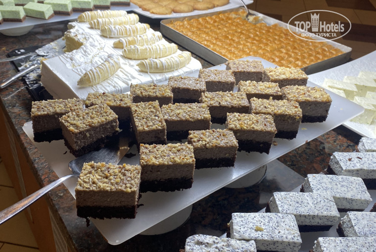 Основной ресторан: завтрак с 7.00 до 11.00, обед с 12.30 до 14.30, ужин с 19.00 до 21.00. Питание очень хорошее, выбор просто огромный (жареное, вареное, гриль, рыба, мясо, курица, выпечка, сладости, фрукты, овощи, салаты, супы, лепешки, очень много гарниров), У каждого бассейна есть свой снек-бар, которые работают с 11.00 до 24.00. Дети постоянно что то находили себе поесть и попить (картофель фри, гамбургеры, овощи, овощные салаты, фрукты) с 16.00 до 17.00 выносили сладости.