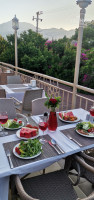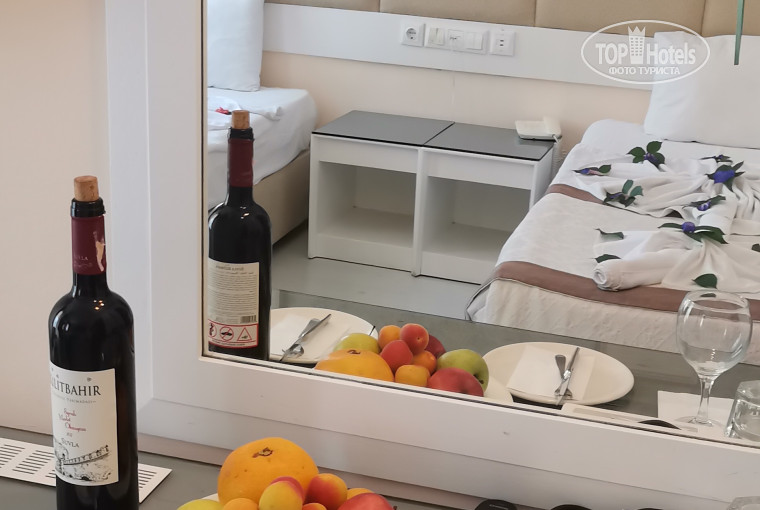 В отель мы приехали в 11 утра, нас встретил Ибрагим, администратор отеля из старой команды, приветливый, тактичный, строгий, профессионал своего дела, всегда выглядит идеально! И в прошлом году и в этот заезд он мне помогал с разными проблемами, за что ему очень благодарна! Заселил нас сразу, помог донести вещи. В номере нас ждал сюрприз - комплимент от отеля по случаю моего дня рождения, было очень приятно! Номер у нас был на 6м этаже в корпусе С, с видом на прекрасные горы Тахталы и Чалыш! Наше утро начиналось с пения птиц, и чуть позже петухов!) Насколько я знаю, номерной фонд в отеле примерно весь одинаковый, немного уставший. Наш номер был чистым, сантехника исправная, кондиционер работал без шума и запаха, постельное белье, полотенца идеально белые новые. Я оставляла чаевые горничной и она крутила лебедей из полотенец и оставляла цветы на кроватях и в раковине, уборка номера была хорошей. Самое моё любимое место в отеле - это веранда (справа вверх по лестнице над столовой) чудесное место для вкусных турецких завтраков, лёгких обеденный перекусов и весёлых ужинов под музыку на свежем воздухе, с красивым видом на горы!! Расим бей - душа этого места, умело организовывает работу персонала - белые скатерти, столы быстро убираются. Здесь за отдельную плату можно получить свежевыжатый сок или вкусное коллекционное вино в стеклянных бокалах..вечерами Расим бей здесь устраивает праздничные ужины, поздравления с днем рождения и караоке! В прошлом сентябре мне повезло быть на вечере, когда на веранде выступали приглашённые артисты - певец и танцовщица танца живота!! В этот приезд для меня на веранде Расим бей тоже устроил праздник - день рождения с тортом, которым угощали всех гостей и файер шоу!) Огромное спасибо, это был незабываемый вечер!