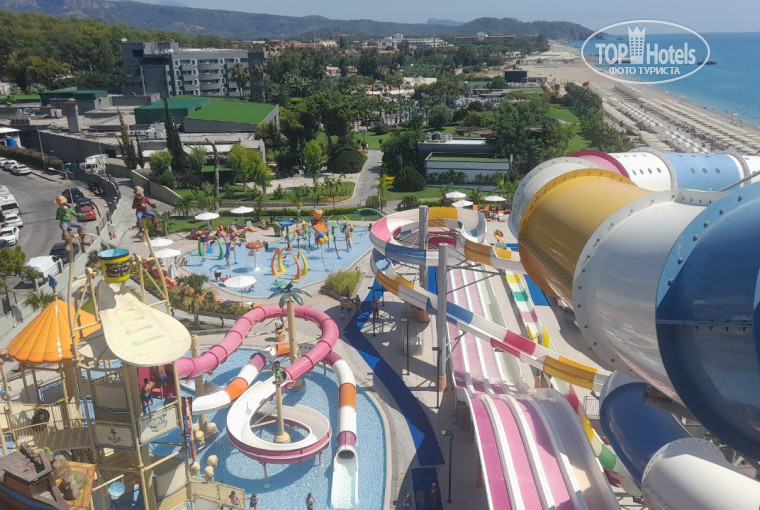 Если кратко - то мне понравилось, может быть вернусь. Приехали в 12 в отель, обед в 12.30,заселили в 14 часов. Номер в главном корпусе, вид на море. По номеру вопросов нет, уборка каждый день, бар пополнялся каждый день, полотенца меняли каждый день,кондиционер справлялся. Ну минус если тооько5, что сушилки не было для белья, приходилось просто на спинке стула сушить, но сторона солнечная, быстро высыхает всё. По еде - мы всегда приходили к открытию, еды на наш вкус всегда хватало,брал много всего, но понемногу,гриль зона вкусная, на завтрак омлет, блины, в общем выбор хороший, детей мы не брали, не скажу по детскому меню. Ну и главное - пляж и бассейн. Мест в любое время достаточно, пляж огромный, лежаки никогда все не были заняты, пирс,море теплое, с пирса уплавал к буйкам, там даже дно видно. Бар рядом, плюс на пирсе. Водные развлечения есть на пляже, но мы не пользовались. Аквапарк нормальный. В общем мне всё понравилось. Персонал так же вопросов не вызвал, стараются, приветливые. Негативных моментов нет,наверное спортзал, он вроде бы и есть, но слишком маленький, тесновато уже если 4 человека,но я приходил в 7 утра, 3 человека было нас только.