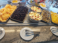 Ресторан: вместительный, нет очередей даже летом, всем хватает места и столиков. Чистенько везде. На столе всегда чистейшая скатерть и тканевые накрахмаленные салфетки по количеству гостей, но простые бумажные салфетки только по 1 шт на человека и только за завтраком, больше вы их не увидите (я брала с собой из номера). Выбор еды просто отличный, правда, присоединяюсь ко всем предыдущим отзывам! На вечер каждый раз что-то новое. На завтраке омлет или яичницу делают при вас на ваш выбор начинок, причем быстро, очередь не образуется, овощи, выпечка ооочень вкусная, отварные яйца, колбасы, различные виды сыров, дыня постоянно, свежий финики, инжир, консервированные персики и ананасы, молоко и неск. видов хлопьев, и т.д. Каши (и супы) они, конечно, готовить не умеют)). На обед и ужин правда выбор достойный, и для меня главное вкус еды, мяса, нет кучи однотипных специй как в Турции. И рыба есть и креветки периодически, кальмары, курица в различных вариантах, утка, и что нам очень зашло всем- так это люля на гриле, они прям идеальные, иногда в виде котлет! Закусок различных и других блюд тоже хватает. Напитки алкогольные в баре различные, плюс кофе машины, чай, кола, спрайт, разведенные соки как обычно, в целом есть все. На ужин в левом дальнем углу каждый вечер готовят какую-нибудь необычную сладость при вас же, например, был пудинг, который слоями, с добавлением фруктов и других начинок, сформировали при мне и подожгли кулинарной горелкой, это была прям вау вкусняха)) там же рядом мороженое, вкусное очень Орео и шоколадное, а также здесь сразу иногда нарезают арбуз или ананас на ужин! Пасту тоже готовят при вас. Видов сыров также много, даже с плесенью, типа дор-блю. Подается все очень красиво! Но мороженое у бассейна безвкусное.