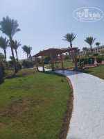 Территория: ухоженная-да, работники сидят выдергивают каждый сорняк вдоль дорожек, но, присоединюсь к словам Елены из Екатеринбурга в предыдущем отзыве-поливают они все в течение дня какой то технической водой с ужасным запахом. Еще огромный минус для меня – это сильно вытянутая к морю территория, по сути, бестолковая, с каменной дорожкой, залитой серой краской (первый раз такое видела). Может осенью и зимой по ней легко и беззаботно прогуливаться до моря и обратно, но.. т.к. мы были в июне, при t 38℃ в тени, эта дорога казалась просто бесконечной, она правда длинная, мимо еще одного небольшого бассейна, амфитеатра (чуть в стороне), каких то бунгало (так и не поняли для кого они предназначены, то ли для гостей, то ли для персонала), по пути 3 небольших навеса, которые были прям спасением. И далее плавно переходим к пляжу..