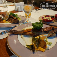 А теперь про минусы🙈🙈 Отельчик староват, потому мебель и посуда уже не в лучшем состоянии. Про кондиционеры уже говорила. В столовой всегда жарко, это не есть хорошо🙀 С едой, конечно, всё индивидуально. Голодными мы не были, но изысков тоже не видели. С рыбой прям беда: за все дни форель была лишь один раз. Зато скумбрия во всех видах ежедневно😄🙈 Сыну понравилась картошка фри. Были овощи, салаты, сыры, сосиски, рис, булгур, говядина, курица, индейка. Сладости не впечатлили, пахлава была дважды за 11 дней. Остальное очень похожее, на основе манки. Утром были вкусные панкейки, халва и яичница. В кофемашинах часто заканчивалось молоко😲