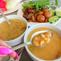 На пляже около бара в будние дни готовят вкусные лепешки гёзлеме с творогом (сыром), картофелем и мясом. Также ежедневно в обед есть спагетти, фри, салаты и бургеры (их делаете сами) Рядом с гёзлеме можно налить вкусный айран 😋