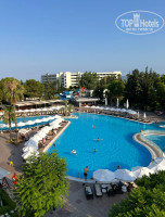территория может и не такая большая как у некоторых других отелей, но нам было и этого много. Практически вся территория в зелени, кроме около бассейна и бара у бассейна. Дорожки выложены плиткой(может из-за тапок, но даже сырая она была не скользкая) в пятницу была пенная вечеринка - и там плитка тоже не была скользкой, но все равно нужно вести себя аккуратно.