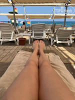 до пляжа надо идти метров 200. Когда выбирали отель и читали отзывы - это казалось небольшим минусом, ведь наверно всем хочется первой линии: вышел из отеля - и сразу море. Но спустя пару дней я понял - что это не минус, а наоборот плюс) после того, как вы наедаетесь на завтрак/обед/ ужин, перекусываете в снек барах, то это хоть какая то разминка для вас) и будет поддерживать вас в хоть каком то тонусе) идти до пляжа спокойным шагом- минуты 2-3. Лежаков много. За неделю отдыха не было ни разу, чтобы не было места. Лежаки есть как пол навесом, так и нет. В течении дня естественно всё меняется из за движения солнца) На пляже есть душ, кран для мытья ног и туалет. Берег- мелкая галька, похожая на песок, при заходе полоса в метра 2 галька покрупнее, потом опять мелкая. Заходить немного неудобно, но это дело привычки) зато вода здесь намного чище, чем на песчаном пляже. Территория для плавания большая, огорожена буйками. Где то посередине находятся спасательные круги (типа для передышки, когда ты далеко плавал, можешь подержаться за них и отдохнуть). На пляже есть спасатель, а так же уголок скорой помощи. Слева водные развлечения- тюбинг, банан, парашют, водный мотоцикл и т.д.