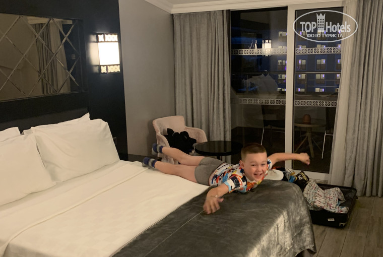 Заселили во второй корпус, на 6 этаж. Прилетели ночью, с задержкой рейса, в общем в миноре) сначала номер не понра. С утра присмотрелась и решила остаться. У нас была огромная веранда ( на которой я загорала когда приболел сын), сам номер тесноват, но терпимо). Wi Fi работает на всей территории отлично!