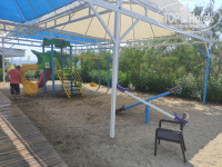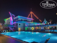 Были в отеле с 14-21 .07 мы с мужем и 2 детьми (4 и 7 лет), заселили пораньше 14-00, номер для 4 маленький, но мы знали куда едем. Дорога до и моря через подземный пешеходный переход, 5 минут и вы на пляже, народу мало, лежаков всегда хватало, море чистое, при входе крупная галька. На пляже кафе работает с 12-17, (фри, макароны, наггетсы, пицца и т. Д), печет бабушка лепёшки, готовят вафли, мороженое каждый день , из алкоголя пиво и вино. Работает детский клуб, утром и после обеда до 17 , насыщенная программа(рисуют, лепят, поделки из бумаги, квесты, спортивные состязания) , моим нравилось, с 14-30/17 мама была свободна🤣. Вечером мини диско, аниматоры стараются, но вот это перед каждой песней диджей Мьюзик напрягает , Комон Комон(Хайди Хайди) 😃, взрослая Анимация тоже интресно. Детские Горки самое популярное место, утром все шезлонги заняты, все походу занимают и идут спать😄. Народу много, на детских запрещено взрослым, но все равное катаются.