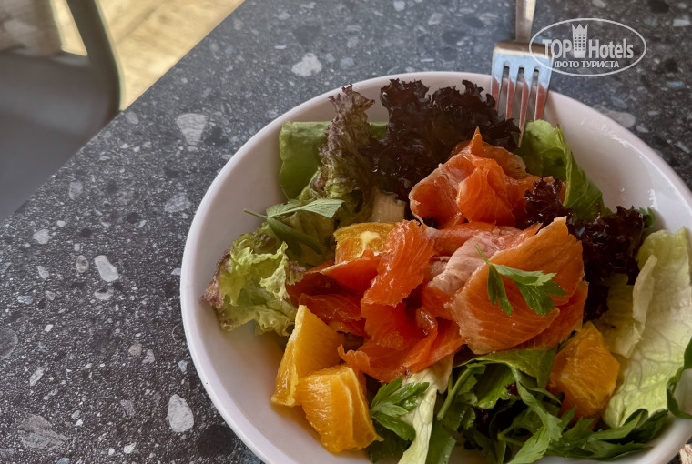 Питание: Очень вкусное и разнообразное. Хотя ассортимент может показаться скромным, всё приготовлено качественно и со вкусом. Всегда были сыры, оливки, овощи, курица, индейка, рыба (форель, дорадо), салаты, фрукты и десерты. Голодными точно не останетесь. По качеству еды — не уступает многим 5★.