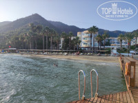 Убитые пирсы, доски неровные, ооочень старые, можно запнуться. Надувного пантона нет, попрыгать в воду проблематично, отвратительные старые лестницы наверх! Сам пляж узкий, но длинный, заходы разные, на любой вкус - в этом отелю повезло.